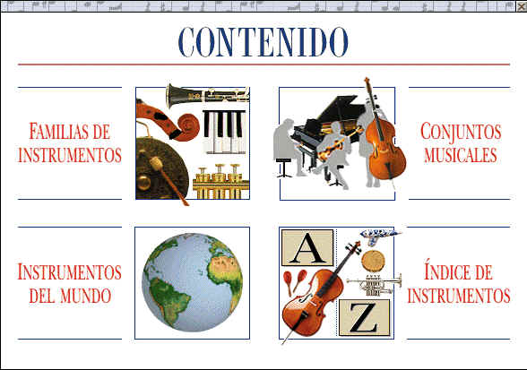 UN PASEO POR LOS INSTRUMENTOS MUSICALES Esta enciclopedia contiene un compendio bastante completo sobre los instrumentos musicales que ha creado el hombre desde épocas muy remotas hasta nuestro tiempo. El contenido general se divide en cuatro grandes grupos que facilita la búsqueda del usuario: Familia de Instrumentos, Conjuntos musicales, Instrumentos del mundo e Indice de instrumentos. En Familias de Instrumentos se observan tres grandes grupos: vientos de metal, cuerda, vientos de madera, teclado y percusión. Si se accede a una de las opciones se pueden observar las familias de instrumentos de una categoría determinada con una breve y sencilla explicación de las características de la familia (forma de tocar el instrumento, elementos de construcción, etc.). Por ejemplo si se elige el grupo de los teclados, aparece una ventana con la familia completa (claves, pianos, órganos y sintetizadores). Con sólo dar un click en el nombre o el dibujo de un instrumento aparece una ventana con otros instrumentos relacionados con el elegido. Por ejemplo, si se selecciona "clave" se verán en pantalla los diferentes tipos (clave, clavicordio, espineta y clavinet). Un pequeño ícono representativo del sonido permite escuchar como suena cada uno. Además acompaña al mismo un texto explicativo de las características principales. Al elegir un instrumento se pueden observar gráficos con diferentes perfiles de su estructura, la caja de sonido a través de la cual se puede escuchar el registro completo, efectos especiales y cómo funciona dentro de un conjunto musical (una orquesta, un grupo de cámara - si el instrumento perteneciera a estos grupos-), en que momento histórico del arte comenzó a utilizarse, que instrumentos pertenecen a su familia y datos específicos como la altura sonora, el material de construcción, su origen, clasificación, etc. En el área de conjuntos musicales se pueden escuchar en forma muy clara los diferentes grupos. Por ejemplo, si se selecciona "orquestas", se podrá apreciar la diferencia entre una orquesta barroca, una orquesta clásica, una orquesta del siglo XIX y una orquesta de este siglo. Además como dato curioso se ofrece una plano referido a la estructura orquestal y los tipos de instrumentos que la conforman. En instrumentos del mundo se puede seleccionar, a partir del mapa mundial, un continente deterrminado para ver los instrumentos originales de cada región, cada uno de ellos aparece ubicado en el mapa y se puede escuchar su sonido característico. También se pueden buscar instrumentos específicos a través de un índice gráfico y de esta forma recopilar toda la información deseada. Acompañan al programa un sistema de busqueda por palabra y un menú de opciones que permite imprimir la pantalla actual, configurar la vista de la mismas (sólo en Windows 95) y pedir la muestra de todo el programa a través de saltos aleatorios. Prof. Silvia Peralta (silvia@horizonteweb.com) |