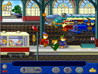 UN PASEO POR EL MUNDO COTIDIANO Este programa recrea diferentes ambientes en donde vive, trabaja, se entretiene y utiliza servicios el hombre: Avenida comercial, Centro cívico, Plaza, Granja, Aeropuerto, Puerto, Estación de trenes y Bosque. El objetivo es que los pequeños recorran cada ambiente, seleccionen personajes (representados por hámsters), elementos, estructuras, sectores (con el puntero de mouse) para conocer como están compuestos, la tarea de los individuos, los mecanismos de los elementos componentes de un entorno y la función de entidades, ya sea comerciales, de entretenimiento, de bien público, de servicios, gubernamentales, etc. Un personaje (taxista) lleva al pequeño a los lugares que quiere recorrer. Dentro de cada ambiente existen personas que relatan cuál es su tarea dentro de la entidad a la que pertenece y/o cuál es la profesión u oficio que ejercen. Del mismo modo puede contemplar las acciones que están relacionadas con dicha tarea a través de animaciones entretenidas en donde los personajes se ponen en juego. También puede comprender el uso de elementos que muestran su accionar con sólo dar un clic con el puntero del mouse. En cada ocasión se menciona que es lo que el alumno ha elegido y aparece la palabra escrita en pantalla. Los ambientes pueden recorrerse a través de un menú de iconos que aparece en la pantalla principal o a través de alguna situación animada que conecta dos ambientes distintos, por ejemplo: un autobomba sale del cuartel de bomberos que se encuentra en el ambiente de la avenida comercial (al seleccionarlo) y va al puerto en donde se ha producido un incendio, una vez allí el niño puede quedarse en este nuevo entorno. De este modo los ambientes están relacionados y el accionar de los personajes (como lo es el bombero) no queda aislado en un solo sitio, sino que actúa en varios lugares (como en realidad es su oficio). Por otro lado, el niño puede entrar a algunas instituciones para ver como funcionan por dentro y salir cuando lo desee. Acompañan a cada actividad un menú con diferentes opciones; uno de ellos permite la entrada a escena de distintos personajes aleatorios que pueden llegar a participar de los entornos (un mimo, una vendedora de globos, una familia paseando, etc.); una lupa que al pasar por las escenas permite ver mejor las situaciones que se presentan; un visor de rayos X que muestra a individuos, estructuras y elementos por dentro. Dentro de las posibilidades que ofrece este programa se encuentran tres juegos interactivos: Construcción, Enlatadora y Altamar. Construcción A partir de una escena elegida por el mismo niño se pueden construir distintas estructuras, entre las que se encuentra una casa con todos los elementos externos que la componen. El alumno puede seleccionar los materiales a partir de un menú y armar su diseño como lo desee, colocando las partes en sectores de la pantalla. El trabajo final puede ser guardado o impreso. Enlatadora En este juego el niño trabaja dentro de una fábrica de enlatado. Según consignas gráficas (etiquetas) debe colocar determinada cantidad de elemento dentro de latas que van pasando por una cinta. Un personaje que controla el producto final, verifica cada respuesta y propone nuevas alternativas. Altamar Aquí el niño juega con un barco de pesca. La intención es que recoja con una red cierta cantidad y tipos de peces, entre varios distractores. Los personajes pueden ser animados para colaborar en la tarea (buzo que arregla desperfectos del barco) y puede cambiarse la velocidad del juego. Prof. Silvia Peralta (silvia@horizonteweb.com) |
